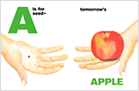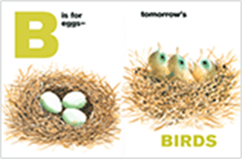 アルファベットだけでなく、物事の前後の姿が学べる絵本。