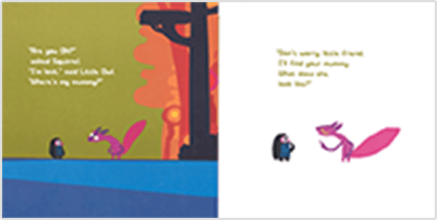 巣から落ちて、迷子になった子どもフクロウに、リスさんがママを捜す手助けをしてくれます。「きみのママはどんなママ?」と特徴を聞いてあちこち探しますが、どれも違っていて…。フクロウは無事ママに会えるのでしょうか。